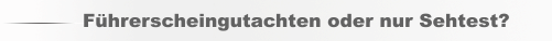 sollten Sie den Sehtest auch mit Sehhilfe nicht bestehen, benötigen sie ein Führerscheingutachten (s.u.)