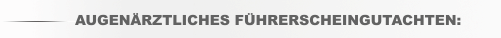 beinhaltet außer einem Sehtest nach DIN 58220 auch die Untersuchung der Gesichtsfelder, die Prüfung der Augenbeweglichkeit, den Ausschluß fahrtauglichkeitsrelevanter Schielfehler, die Überprüfung des Farbsinnes, die Erhebung des Augenorganbefundes und schließlich die gutachterliche Stellungnahme/Bescheinigung
